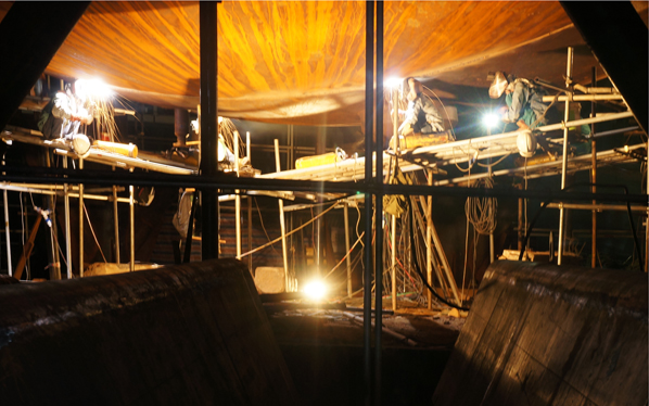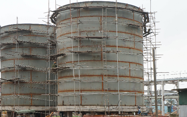 Công ty bắt đầu thi công, lắp đặt từ tháng 05/2013, hiện nay đã lắp đặt xong 02 bồn cầu khối lượng 1110 tấn cao 23,7 mét, đường kính 21,2 mét, dung tích 5000m3/ bồn. Lắp xong ống khói cao 45m và 296 tấn thiết bị của 02 Bồn trụ đứng. Lắp đặt hoàn thành 981 tấn thiết bị lò hơi dự kiến thử áp lò hơi này vào ngày 26/04/2014.